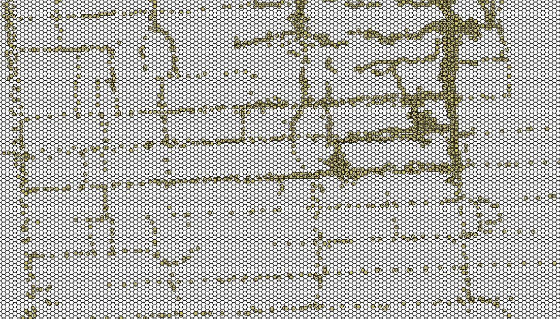 After the hexagonal layer was drawn I used a "Points in Polygon" method and had success, but the amount of points in a polygon isn't indicative of Wi-Fi signal strength.